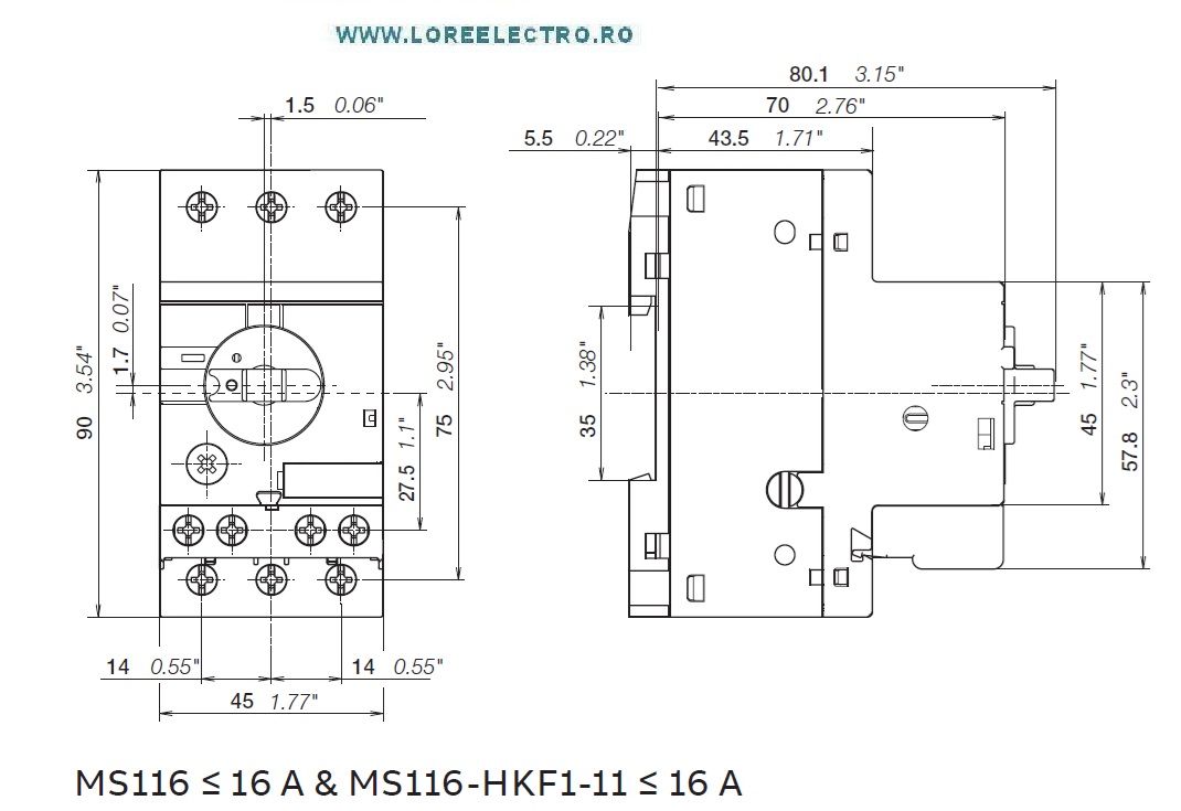 MS116-1.0 MOTORSTARTER DISJUNCTOR PROTECTIE MOTOR ABB Putere 0,25KW, reglaj Curent 0,63A ... 1A 1SAM250000R1005,