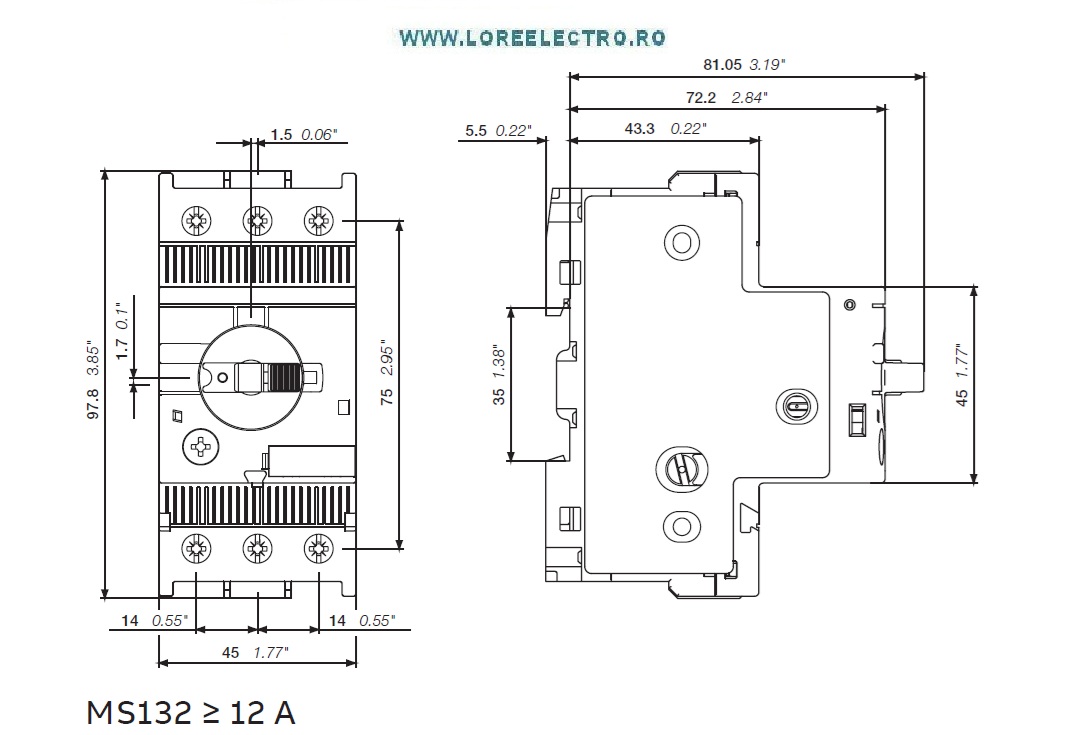 MS132-16 INTRERUPATOR DISJUNCTOR PROTECTIE MOTOR ABB P 7,5KW, Ir 10A ... 16A 1SAM350000R1011,