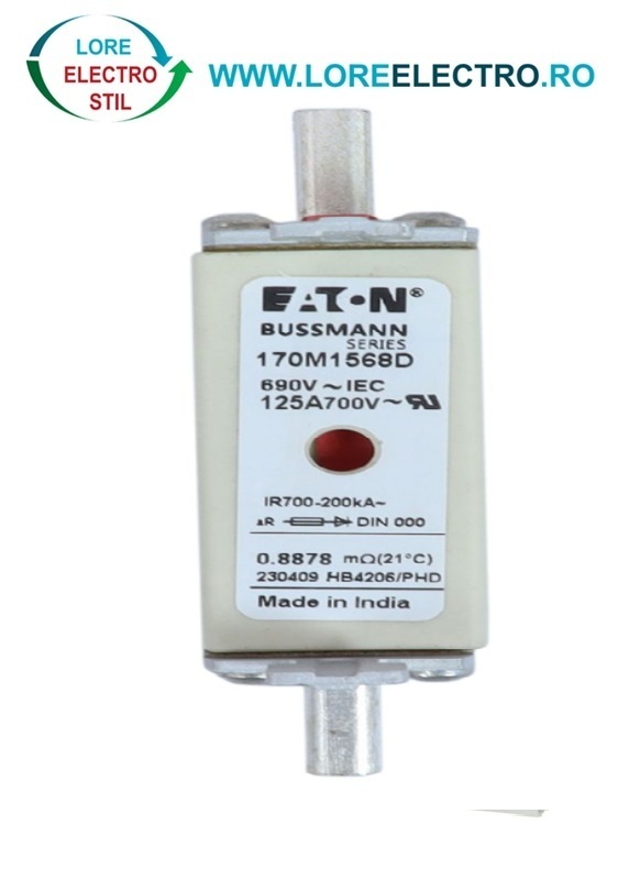 170M1568D Siguranta fuzibila ultrarapida MPR 125A, NH 000, curba ardere aR, 690 V AC, capacitate de rupere 200 kA, Eaton Bussmann,