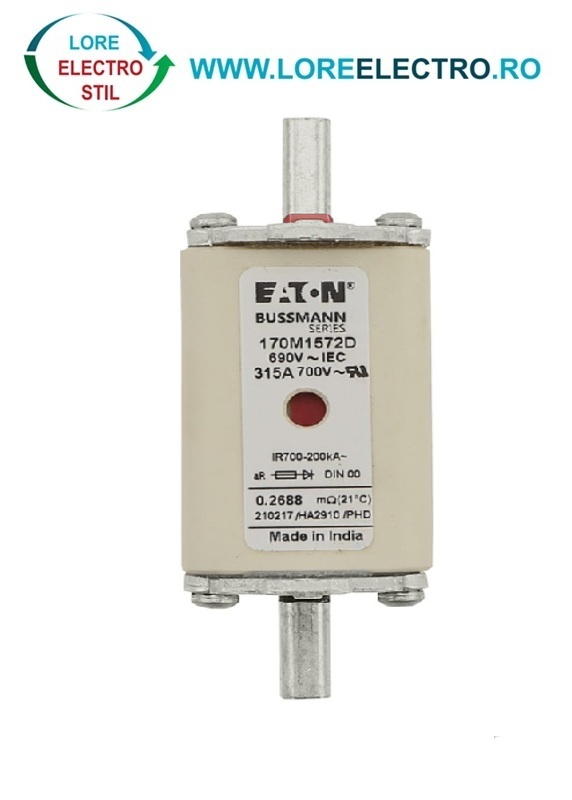 170M1572D Siguranta fuzibila ultrarapida MPR 315A, NH 00, curba ardere aR, 690 V AC, capacitate de rupere 200 kA, Eaton Bussmann,