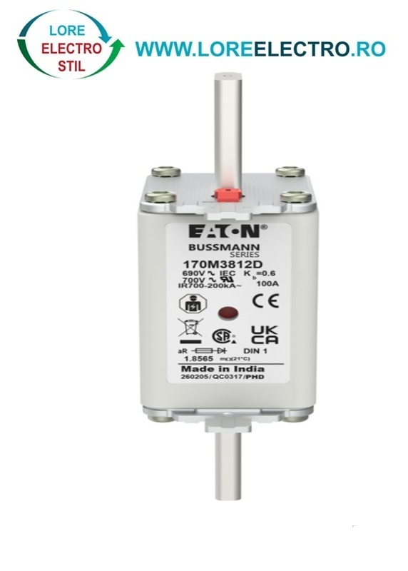170M3812D Siguranta fuzibila ultrarapida MPR 100A, NH 1, curba ardere aR, 690 V AC, capacitate de rupere 200 kA, Eaton Bussmann
