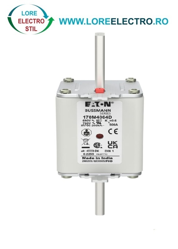 170M4864D Siguranta fuzibila ultrarapida MPR 500A, NH 1, curba ardere aR, 690 V AC, capacitate de rupere 200 kA, Eaton Bussmann,