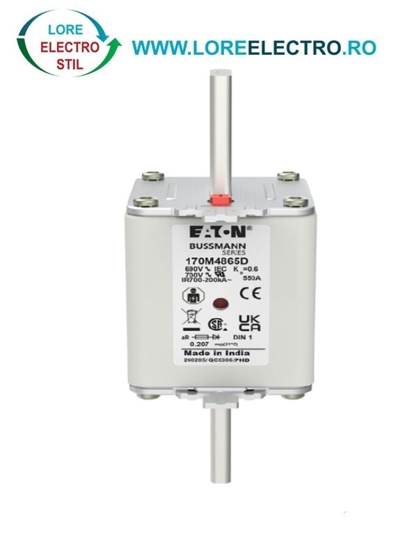 170M4865D Siguranta fuzibila ultrarapida MPR 550A, NH 1, curba ardere aR, 690 V AC, capacitate de rupere 200 kA, Eaton Bussmann,