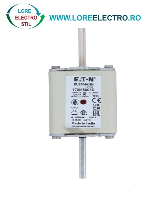 170M5808D Siguranta fuzibila ultrarapida MPR 400A, NH 2, curba ardere aR, 690 V AC, capacitate de rupere 200 kA, Eaton Bussmann,