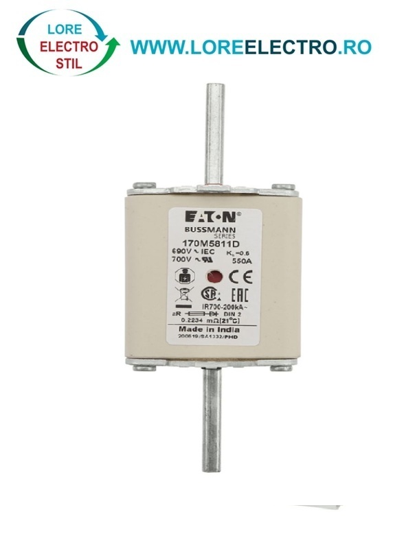 170M5811D Siguranta fuzibila ultrarapida MPR 550A, NH 2, curba ardere aR, 690 V AC, capacitate de rupere 200 kA, Eaton Bussmann,