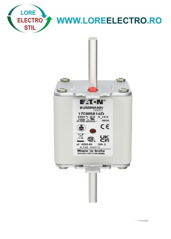 170M5814D Siguranta fuzibila ultrarapida MPR 800A, NH 2, curba ardere aR, 690 V AC, capacitate de rupere 200 kA, Eaton Bussmann,