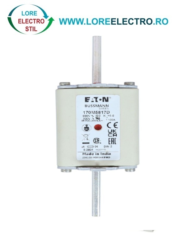 170M5817D Siguranta fuzibila ultrarapida MPR 1100A, NH 2, curba ardere aR, 690 V AC, capacitate de rupere 200 kA, Eaton Bussmann,