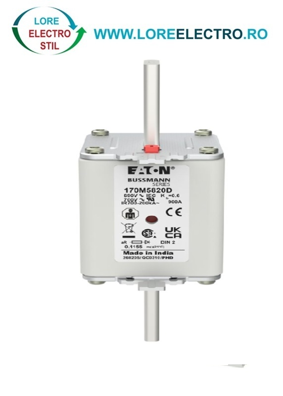 170M5820D Siguranta fuzibila ultrarapida MPR 900A, NH 2, curba ardere aR, 690 V AC, capacitate de rupere 200 kA, Eaton Bussmann,