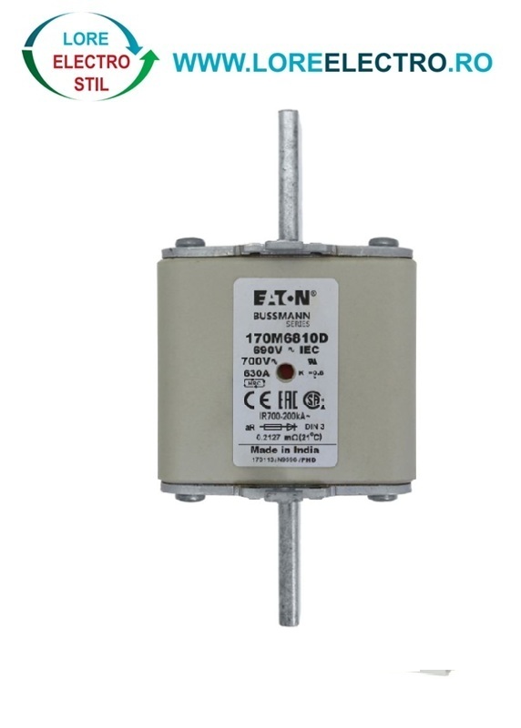 170M6810D Siguranta fuzibila ultrarapida MPR 630A, NH 3, curba ardere aR, 690 V AC, capacitate de rupere 200 kA, Eaton Bussmann,