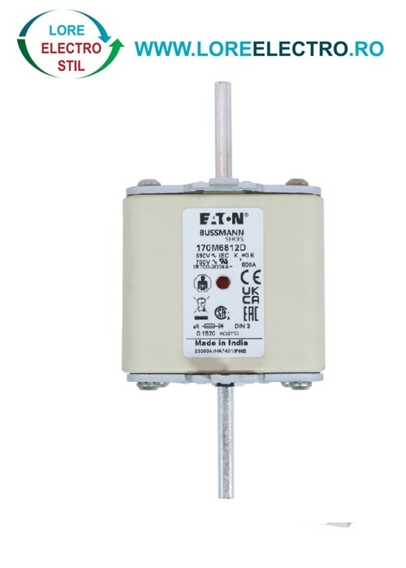 170M6812D Siguranta fuzibila ultrarapida MPR 800A, NH 3, curba ardere aR, 690 V AC, capacitate de rupere 200 kA, Eaton Bussmann,