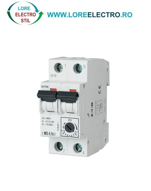 Z-MS-0,40/2 Intreruptor protectie motor Monofazat 0,40A 2 P, EATON, CURENT REGLAJ 0,25A .. 0,40A, tip Siguranta Automata,