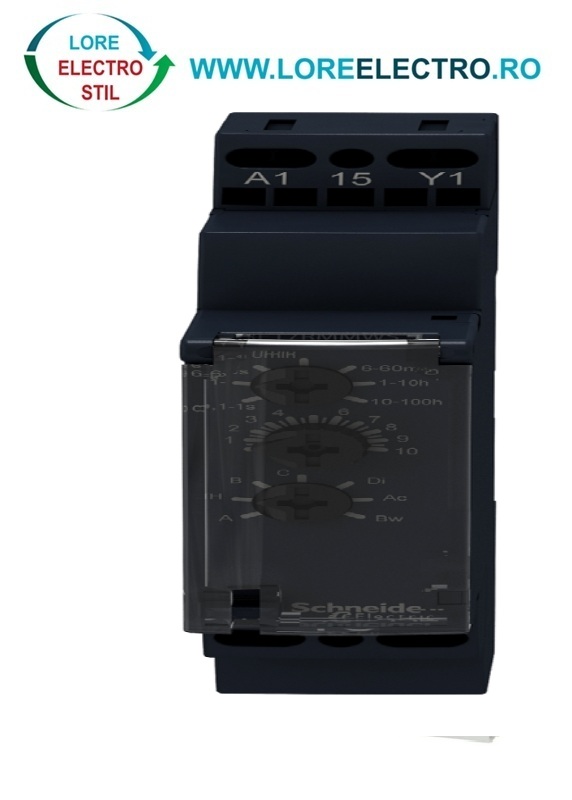 RE17RMMW, releu de timp modular multifunctional Schneider Harmony, functioneaza in intervalul 12-240 V AC/DC, 1 contact de comutare C/O SPDT, capacitate de comutare 8A,