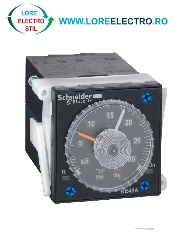 RE48ACV12MW, releu de timp analogic de tip on-delay Schneider, 24-240 V AC/DC (50/60Hz), 2 OC, 5A,