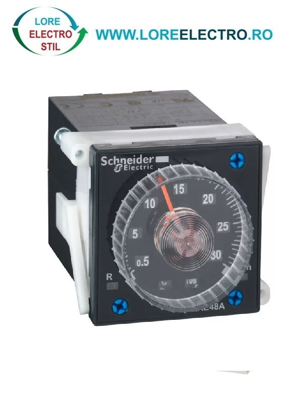 RE48AML12MW, releu de timp analog de tip on-delay Schneider Harmony, functioneaza la 24-240 V AC/DC, 2 contacte OC, curent nominal 5A,