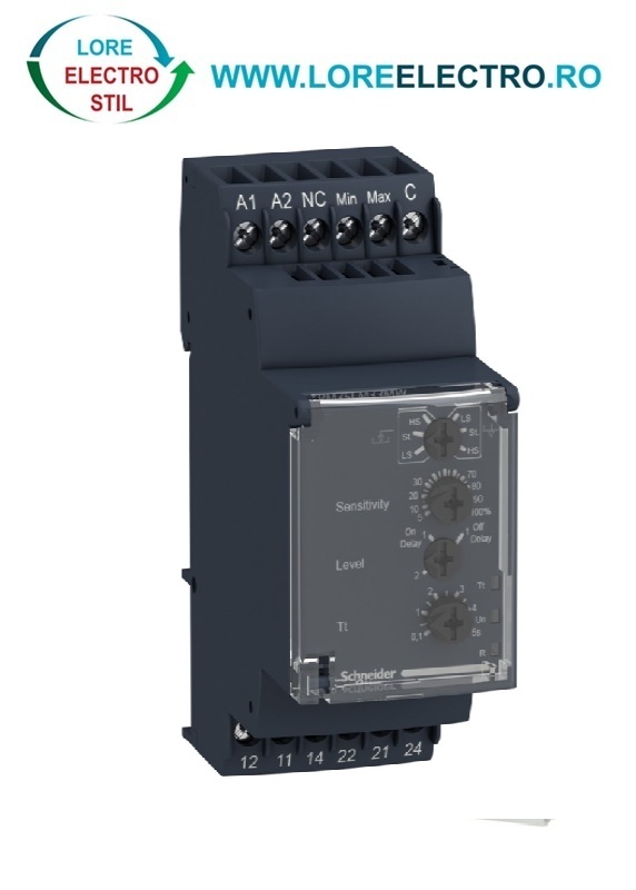 RM35LM33MW, releu de monitorizare a nivelului de lichid Schneider Harmony, functioneaza in intervalul 24-240 V AC/DC (50/60Hz), 2 contacte inversoare (C/O), capacitate de comutare 5A, monitorizeaza nivelul de lichide,