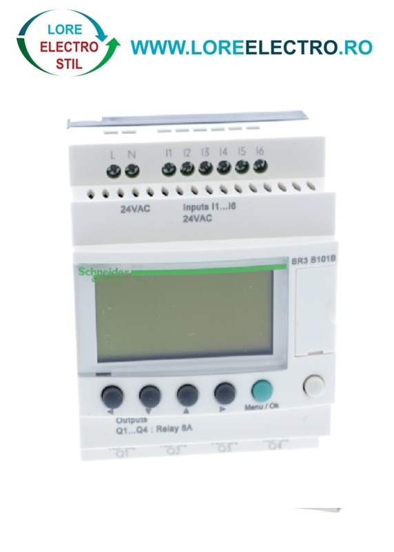 SR3B101B, releu inteligent modular (programabil) Zelino Logic Schneider, 24 V AC, 10 I O, cu afisaj LCD si ceas in timp real RTC,