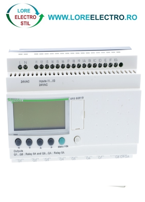 SR3B261B, releu inteligent modular (programabil) Zelino Logic Schneider, 24 V AC, 26 I O, cu afisaj LCD si ceas in timp real RTC,