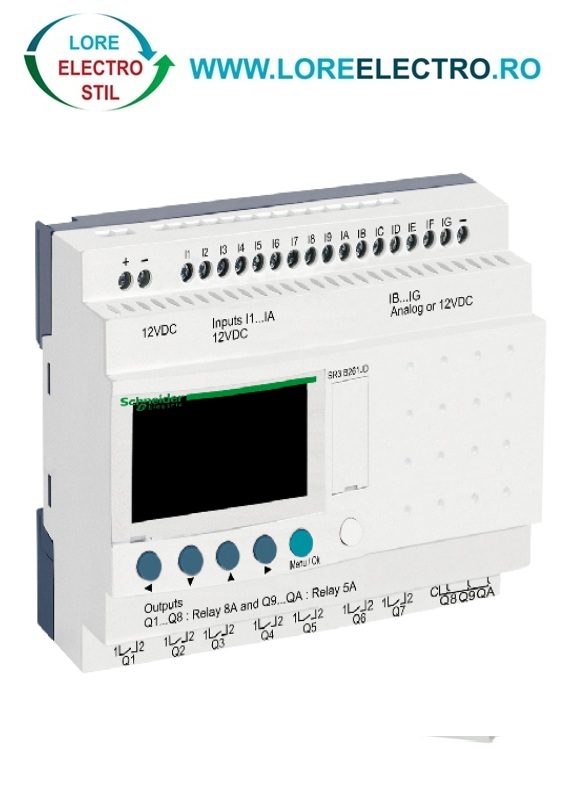 SR3B261JD, releu inteligent modular (programabil) Zelino Logic Schneider, 12 V DC, 26 I O, cu afisaj LCD si ceas in timp real RTC,