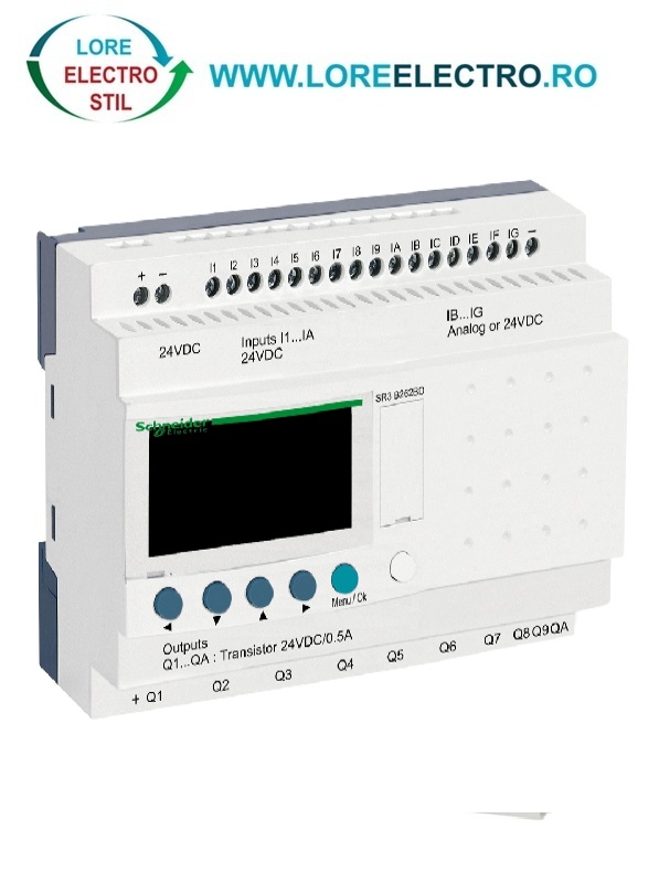 SR3B262BD, releu inteligent modular (programabil) Zelino Logic Schneider, 24 V DC, 26 I O, cu afisaj LCD si ceas in timp real RTC,