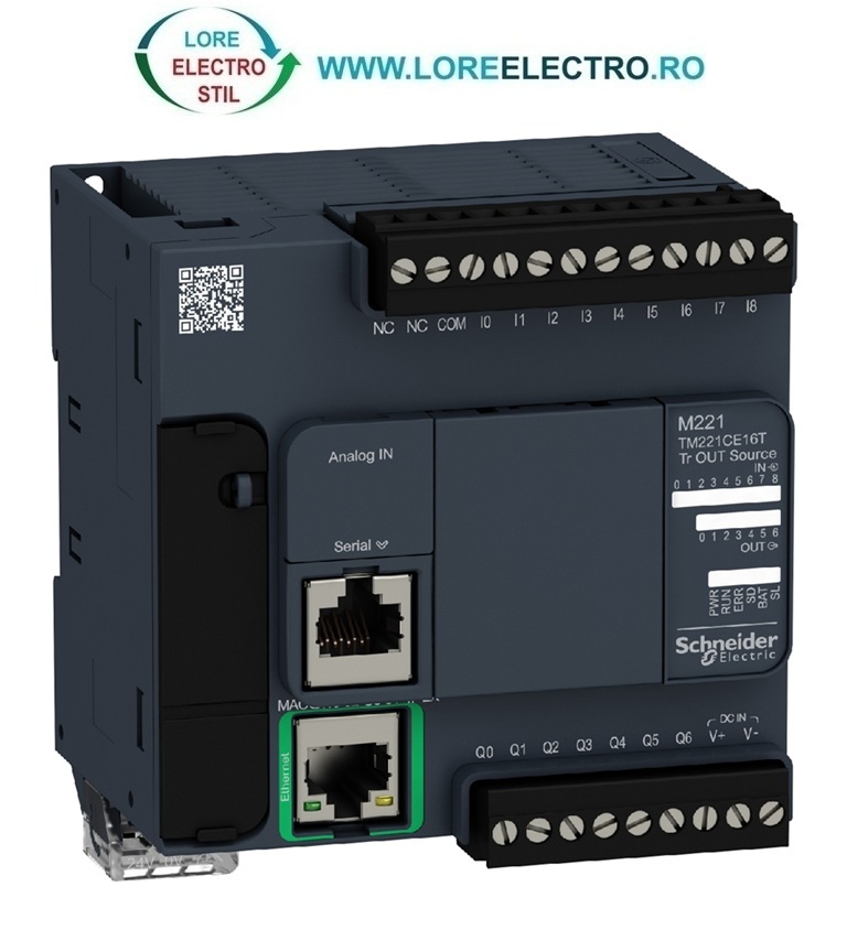 TM221CE16T AUTOMAT PROGRAMABIL MODICOM M221 CU 16 LOGIC I/O, IESIRI TRANZISTOR, CU ETHERNET, TENSIUNE ALIMENTARE 24V DC, SCHNEIDER ELECTRIC,