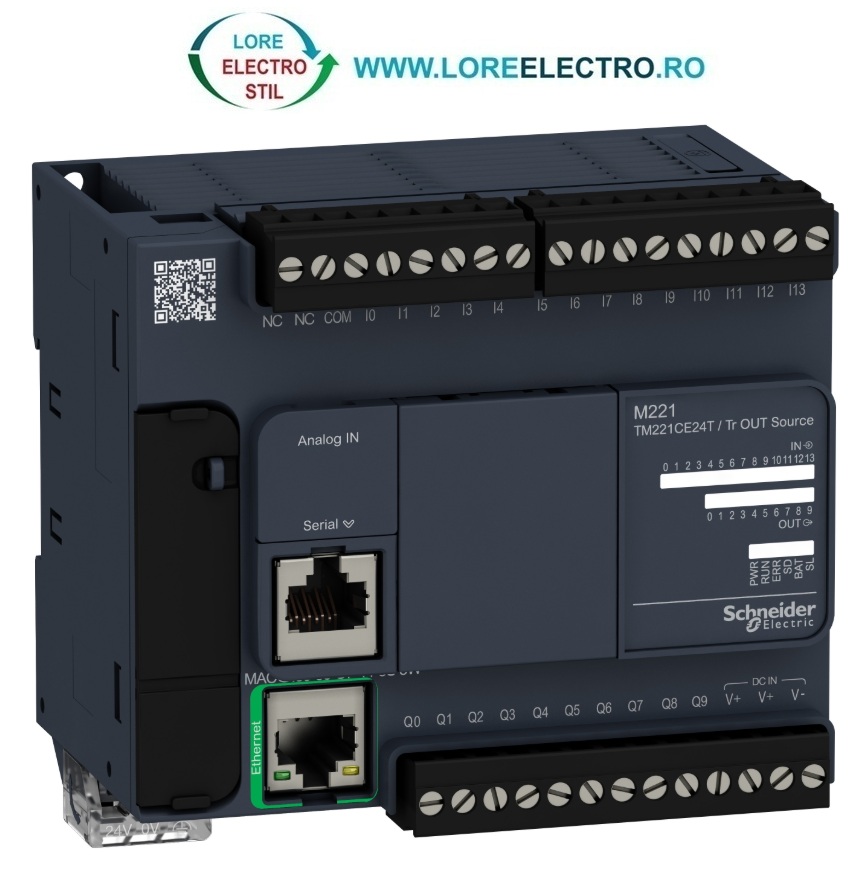 TM221CE24T AUTOMAT PROGRAMABIL MODICON M221 CU 24 LOGIC I/O, iesire 10 SOURSE Tranzistor, Cu Ethernet, TENSIUNE ALIMENTARE 24V DC, SCHNEIDER ELECTRIC,