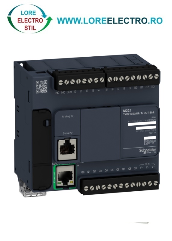 TM221CE24U AUTOMAT PROGRAMABIL MODICON M221 CU 24 LOGIC I/O, iesire 10 SINK Tranzistor, Cu Ethernet, TENSIUNE ALIMENTARE 24V DC, SCHNEIDER ELECTRIC,