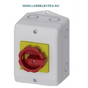 3LD2565-0TB53 intrerupator genreal 63A montat in cutie plastic cu cheie pornit oprit 63A 3poli, 22Kw Tip Pacco, Miner Rosu Galben SIEMENS,