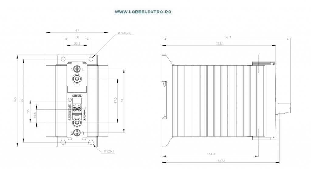 3RF2340-1AA24 RELEU ELECTRONIC 40A, SIEMENS, TENSIUNE DE FORTA 48V .. 460V AC, TENSIUNE DE COMANDA 110V ... 230V AC CU RADIATOR,