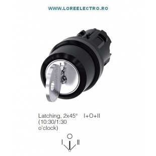 3SU1000-4BL01-0AA0 Cap cheie de comanda 3 pozitii cu retinere 1 - 0 - 2, plastic, cu Cheie RONIS SB30, Cu scoatere cheie pe pozitia 0, Siemens, Sirius Act, 22mm,