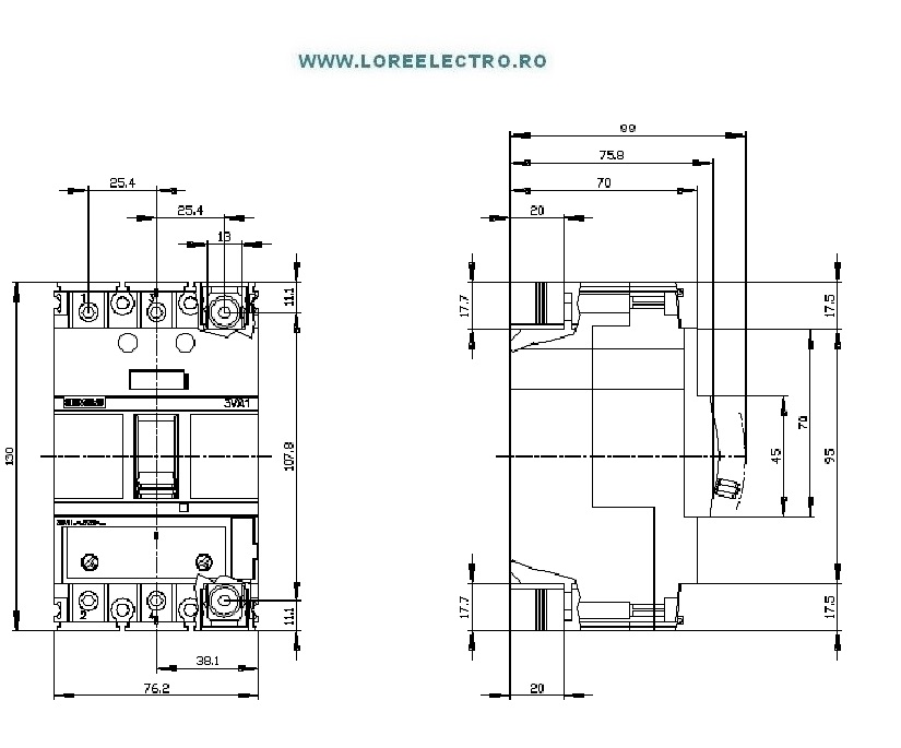 3VA1140-3EF36-0AA0 INTRERUPATOR AUTOMAT MCCB TERMOMAGNETIC 40A, 3POLI, IR ( 28A ... 40A ), 25kA, SIEMENS,