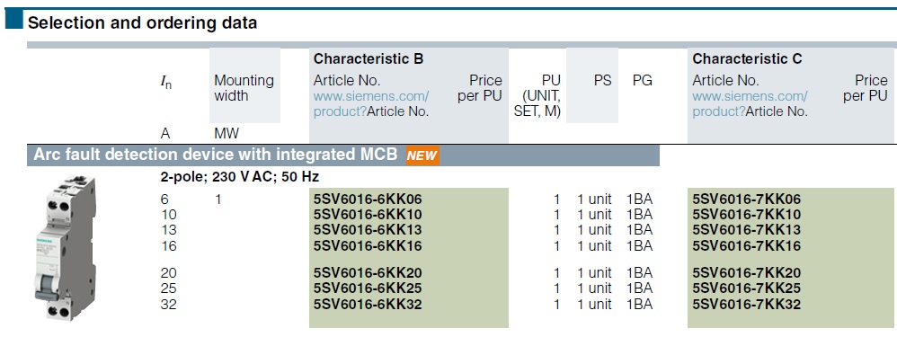 detection 16A, AFDD Siemens, Siguranta automata cu AFDD, 5SV6016-6KK16